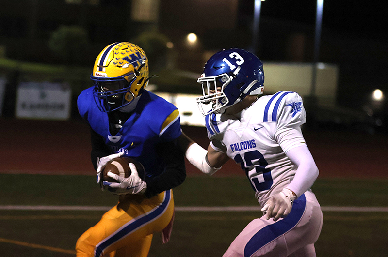 The possession was highlighted by a 13-yard pass from Frazer-Hewitt to sophomore Glenn Coppage and a 20-yard completion to sophomore Larry Taylor, which gave Waynesboro a first down at the Falcons 27. Two plays later, Frazer-Hewitt connected with Dwayne Robinson for 11 more yards.