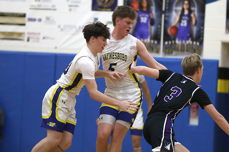 Despite trailing by double digits, Waynesboro played a spirited game and inched closer and closer. Dominic Goodworth sank a three-pointer to start the second quarter. Rayshawn Frazer-Hewitt followed with a put-back shot and then added a basket to make it 19-11.