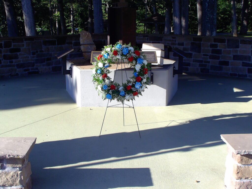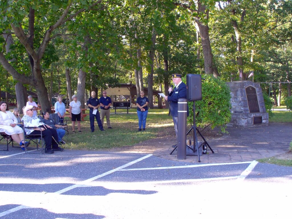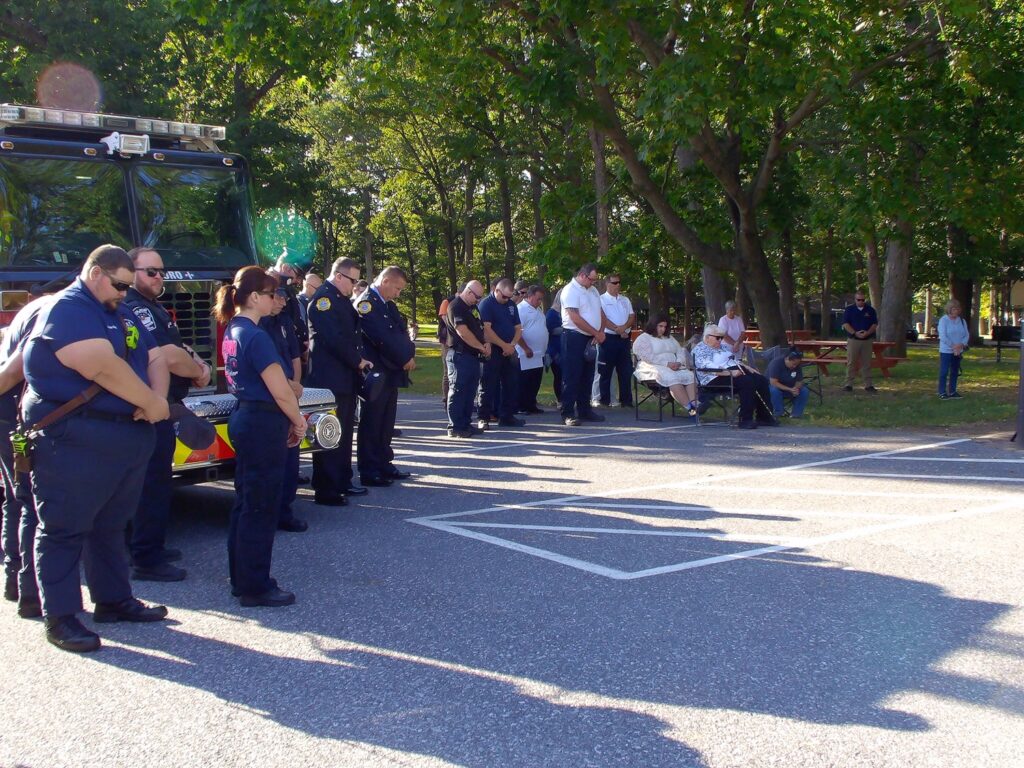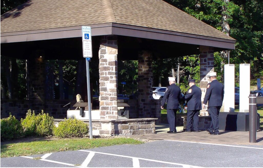 From there, members of the Blue Ridge Fire & Rescue Company #4, the Waynesboro Volunteer Fire Department Company #2 and the Raven Rock Emergency Service led the ceremony of setting the wreath in front of the 9/11 Memorial located under the pavilion at the entrance to the park. Then a prayer was led by Mike Bock, followed by a moment of silence.
