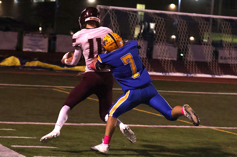 The dagger came two plays into Waynesboro’s ensuing offensive series when Mechanicsburg’s Jack DeLuca intercepted a pass and returned it for a touchdown for a 26-0 lead with 25 seconds remaining in the second quarter.