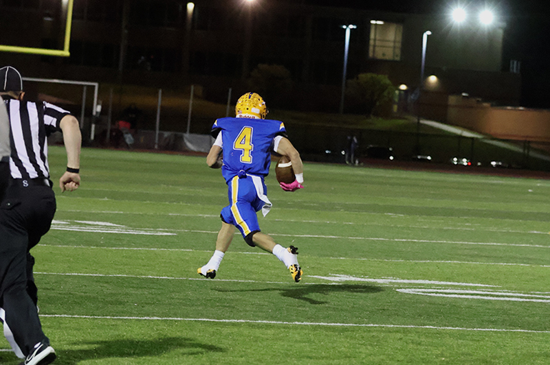 Steven Howard electrified the Homecoming crowd with a 75-yard interception return early in the fourth quarter. Howard, who also returns kicks and plays wide receiver on offense, perfectly timed a pass thrown by backup quarterback Luke Reider, who replaced starter Noah Apple, who left the game due to injury. From there, Howard had a clear path down the Waynesboro sideline. For good measure, linebacker Shawn Smith ran interference along the way to ensure Howard didn’t get caught from behind.