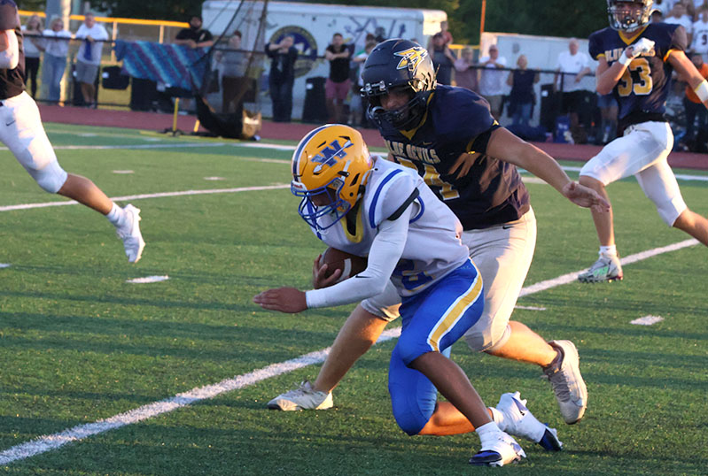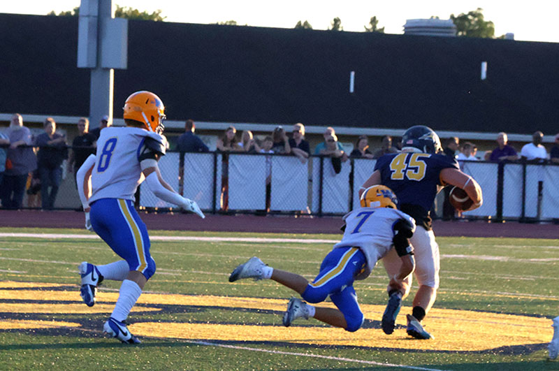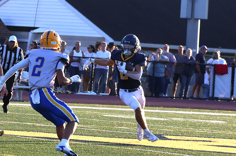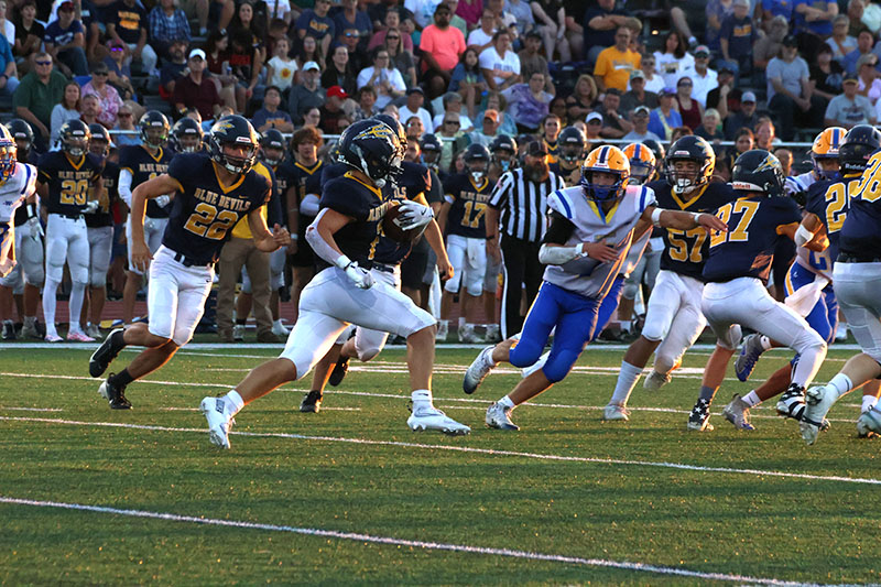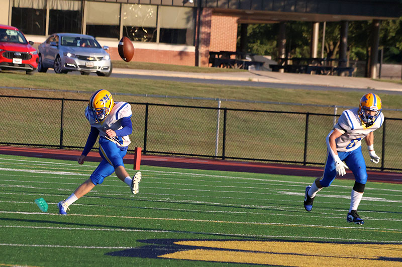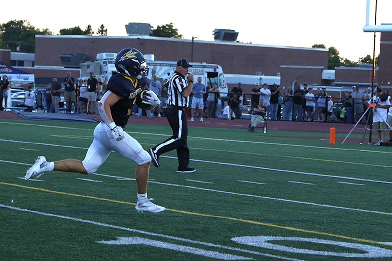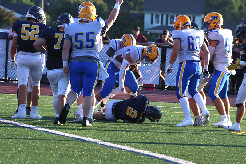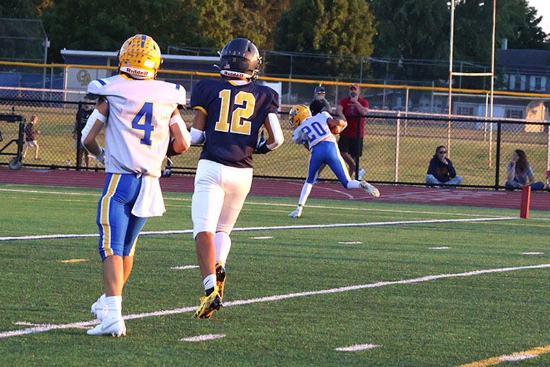 It was a beautiful possession for a season-opening game, and the first third-down conversion of the campaign came on a nifty 12-yard completion from senior quarterback Rayshawn Frazer-Hewitt to another senior, Ayden Strausbaugh. Baumgardner, like a bull in a china shop, broke loose for 19 yards on another third-down play to keep the drive going. Torbica saved the drive when he pounced on a loose ball at the G-A 33-yard line. Frazer-Hewitt ran for six yards, and he then passed to Larry Taylor for 24 yards to set up Baumgardner’s score.
