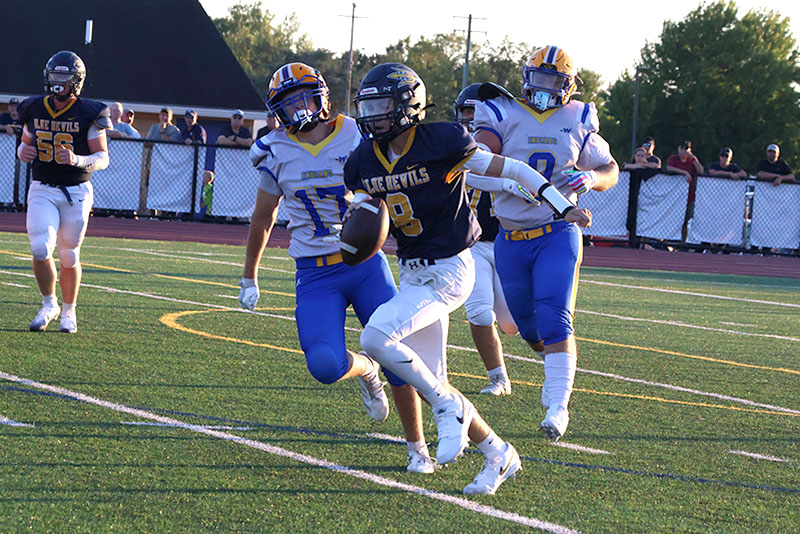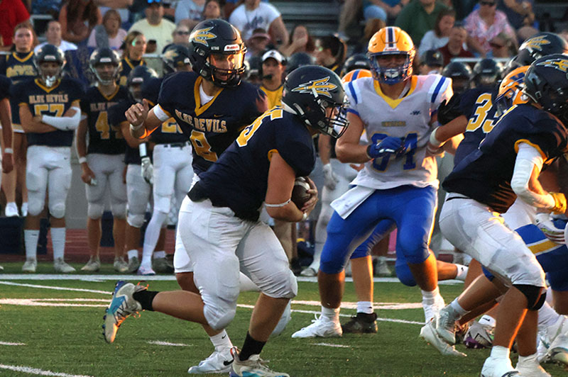 The Blue Devils retook the lead after taking over at their 39. Galinanes galloped for 18 yards on first down. Two plays later, quarterback Lane Barry to Noah Shifflett. The extra point made it 14-12.