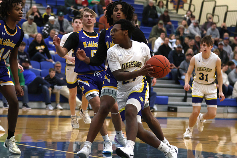 Thanks to strong guard play from point man Carter Hough, who played a masterful game of keep away from a frustrated Middletown defense, Waynesboro’s perimeter players were able to whirl the ball around like a speeding carousel while the inside players were setting screens and working to get open near the cylinder.