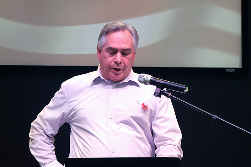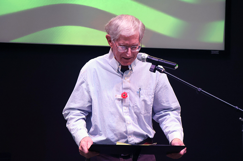 The program continued with a poignant reading of “In Flanders Fields,” the iconic World War I poem written in 1915 by Canadian Lt. Col. John McCrae. Green Hill Cemetery Association Director Tom McCloud recited the verses.