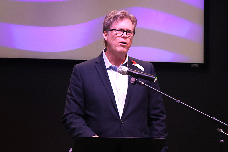 Following the Pledge of Allegiance and a recorded rendition of the National Anthem the featured speaker took the stage. Rev. Steven R. Sheldon, a U.S. Navy veteran who served as a radioman, presented the keynote address. Sheldon highlighted the profound sacrifices of the veterans buried at Green Hill Cemetery, noting that 164 individuals who served in World War I and World War II rest there eternally.