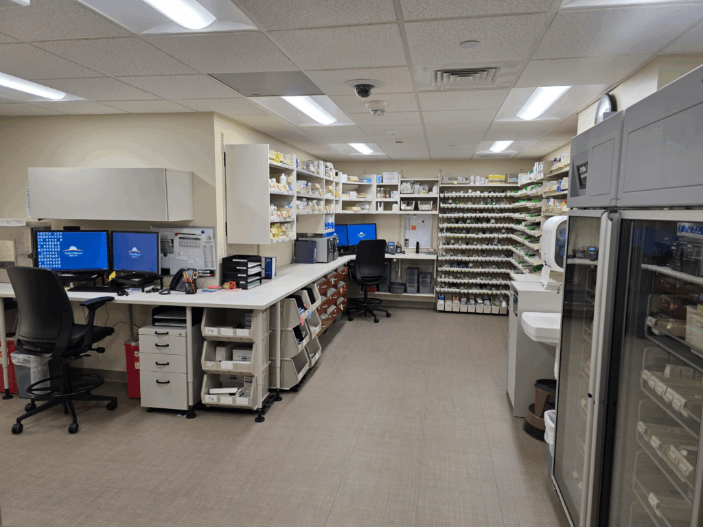 The new suite also includes a dedicated team member break area and a permanent workspace for the pharmacy resident, improving working conditions. Additionally, the upgrade has freed up clinical space on the third floor, allowing for potential future expansion.