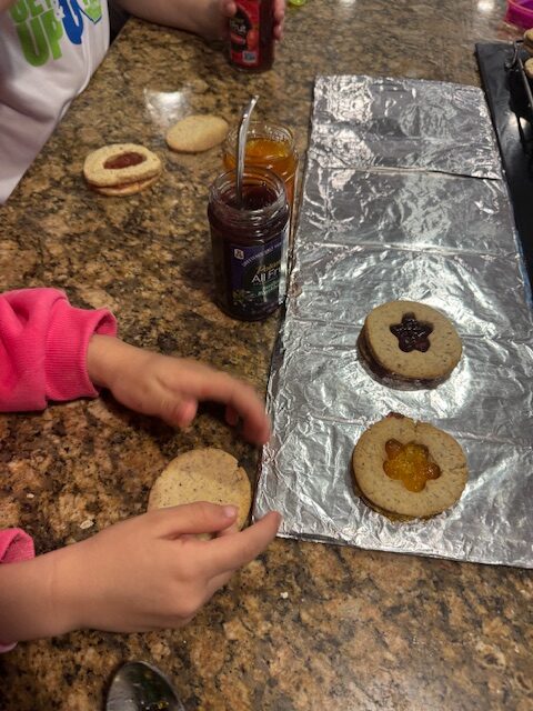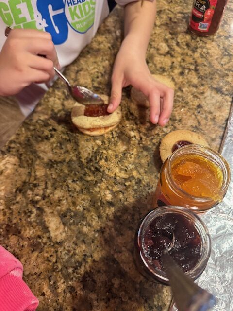 Our cookies turned out slightly larger than expected, yielding 12 sandwich cookies after discarding a few crisp bases. The girls had a blast assembling the cookies with three different jams. The result was surprisingly delicious—soft cookies with just the right amount of sweetness from the jam. Notably, they didn’t even request icing, a testament to the cookies’ appeal.