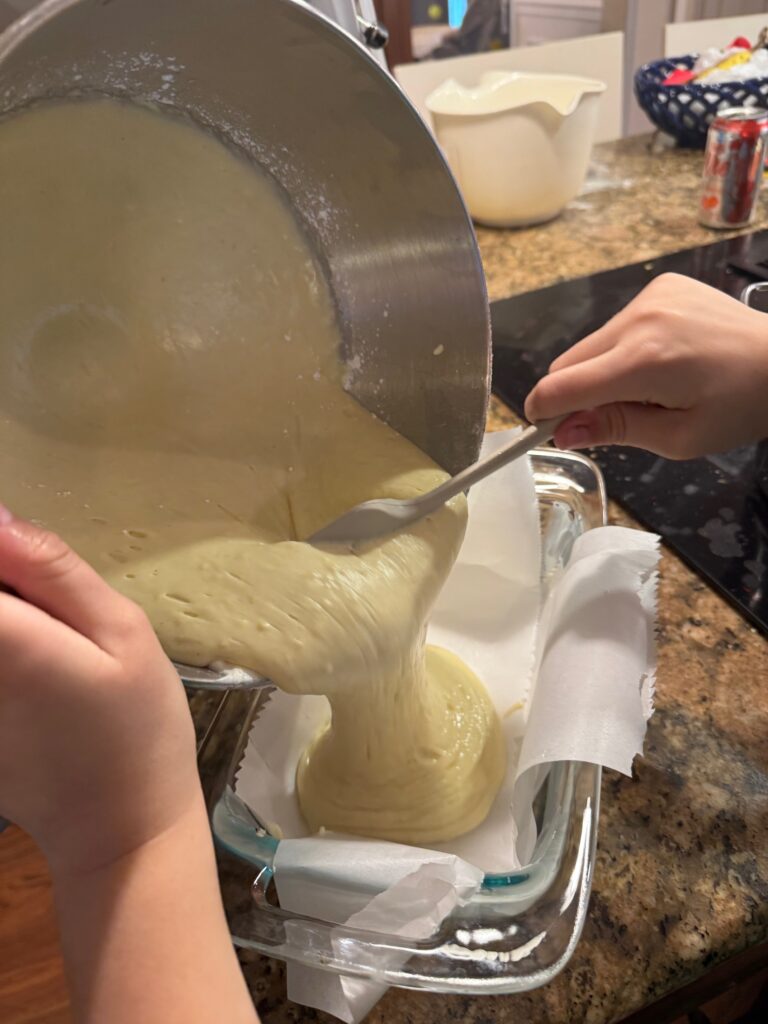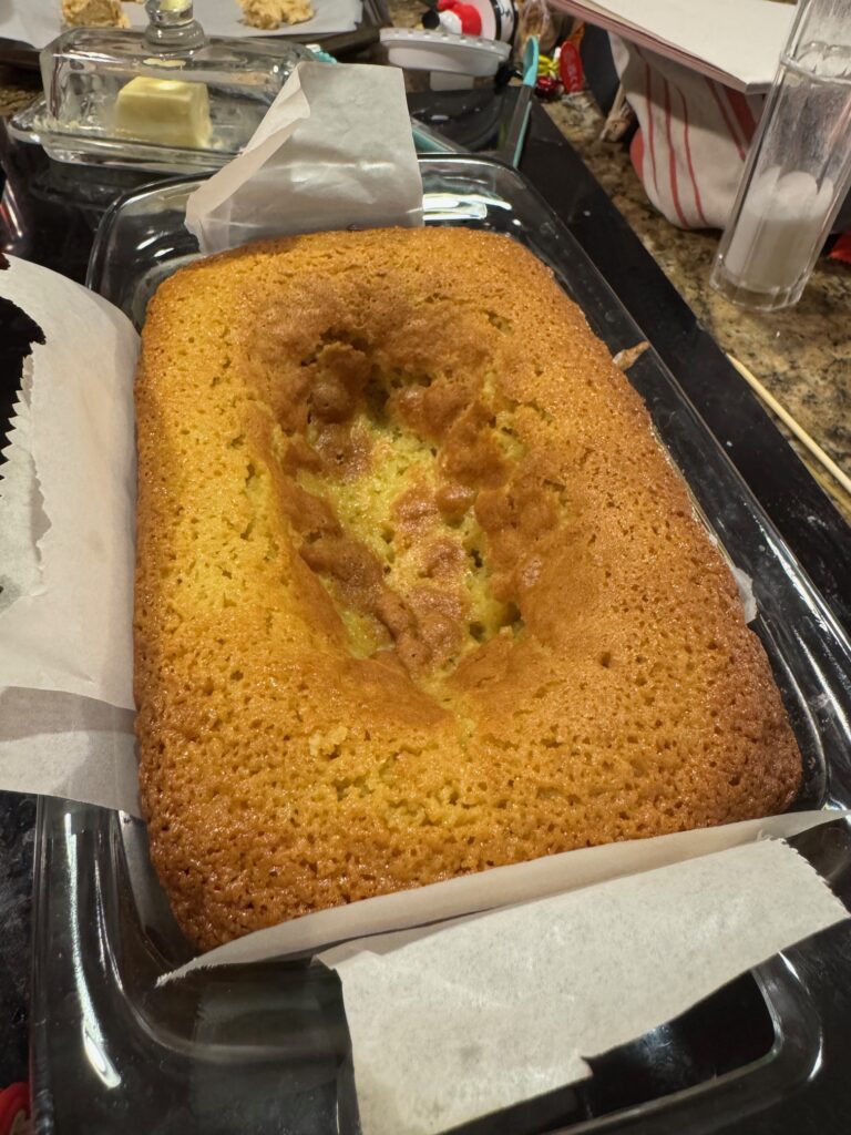 However, as our lemon loaf baked, things took an unexpected turn. The center of the cake sank – a cosmetic flaw that could have been disheartening. But instead of letting it ruin our efforts, we decided to get creative. We flipped the loaf over and iced its bottom side, transforming what could have been a failure into a delicious triumph.