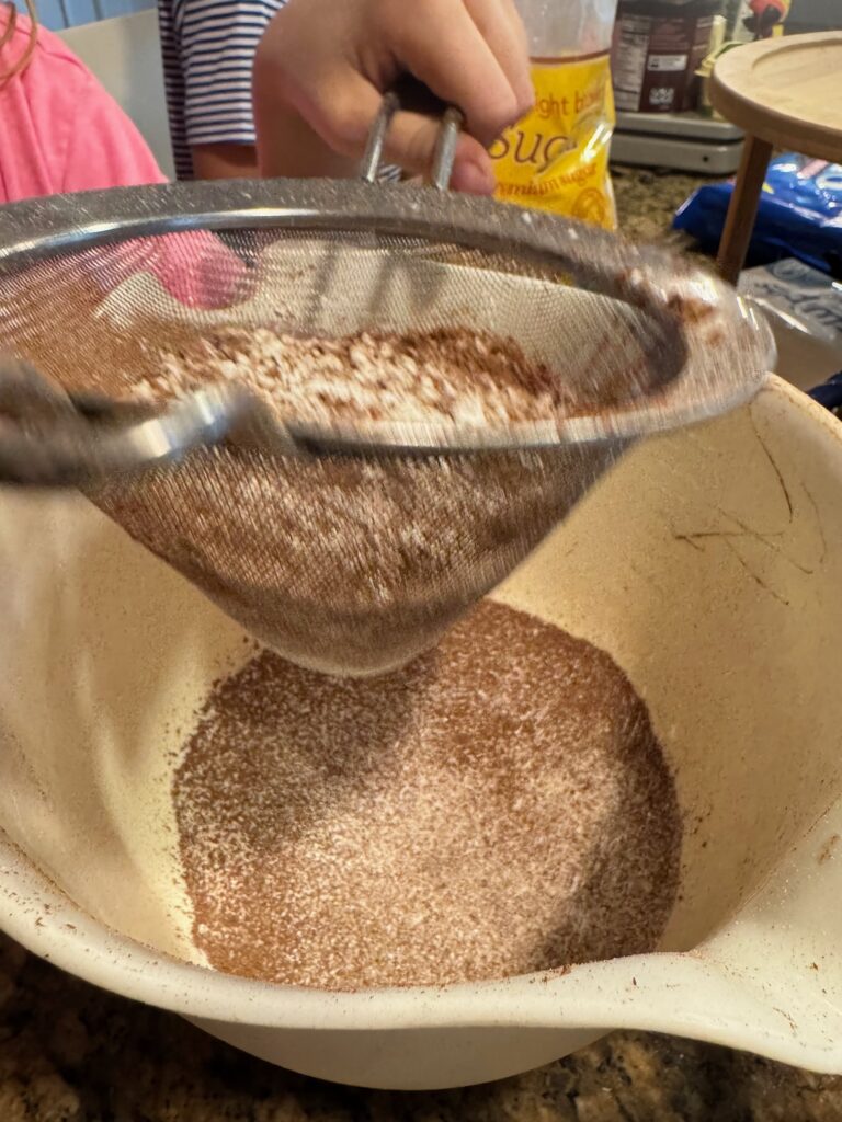 Sift in the flour, cocoa powder, and salt. Gently fold to combine, being careful not to overmix. Fold in the white chocolate chips. - Layer & stuff: