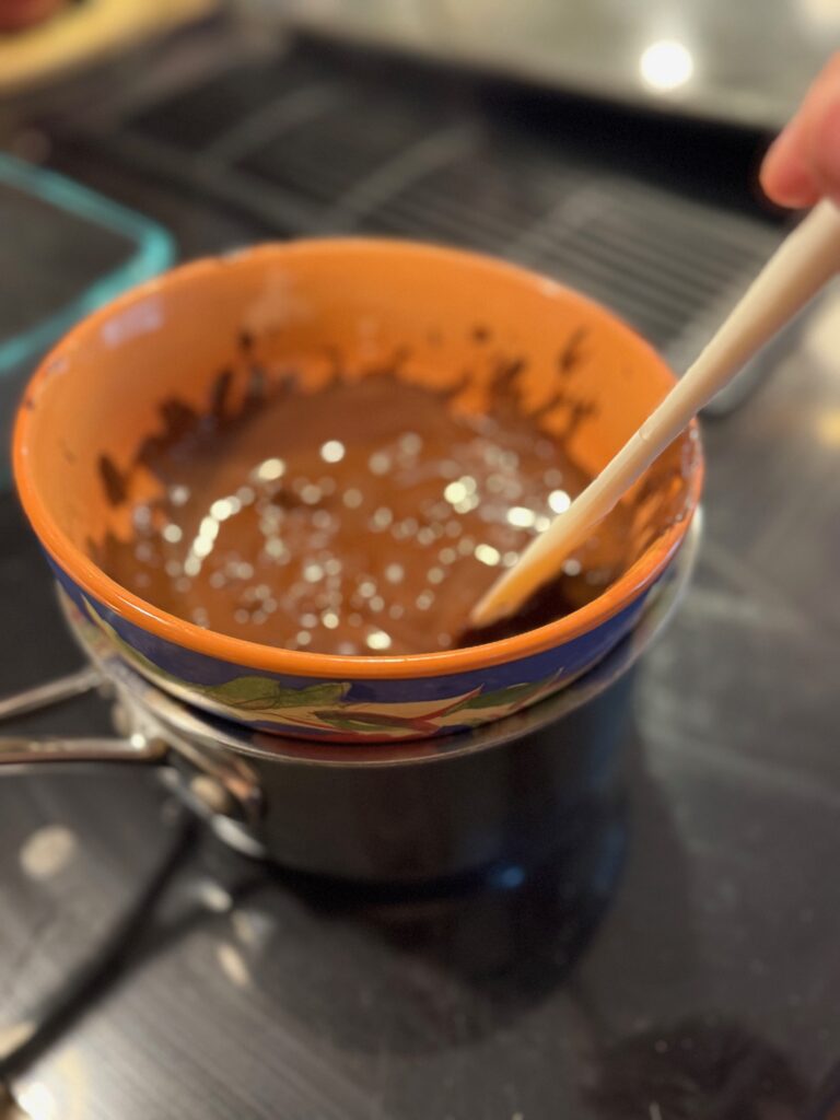 - 4½ oz (125g) dark chocolate (at least 50% cocoa), broken into pieces, melted and cooled slightly