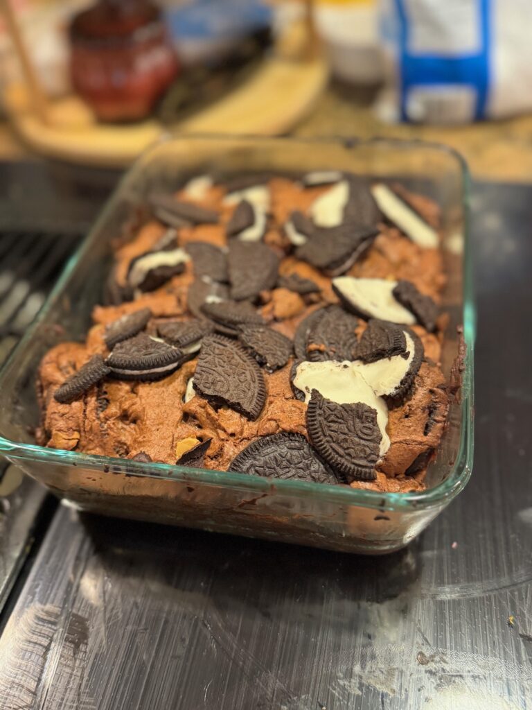 Who doesn’t love the idea of a brownie packed with cookies and cream? The recipe promised a rich, fudgy base, white chocolate chips, and a surprise layer of whole cream-filled cookies in every slice. It sounded decadent, a little over-the-top and absolutely perfect for a family baking session.